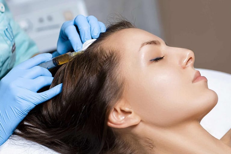 Mesotherapy is a minimally invasive treatment that involves injecting a cocktail of vitamins, minerals, amino acids, and other nutrients directly into the scalp to nourish hair follicles, improve circulation, and promote hair growth. This targeted delivery of nutrients provides essential support to the hair follicles, stimulates cellular metabolism, and enhances the overall health and vitality of the scalp and hair.